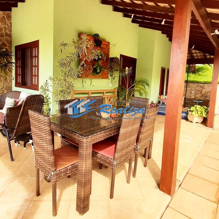 Duas casas a principal com 3 dormitórios sendo uma suíte, wc social, lavabo, cozinha, despensa, lavanderia coberta e sala, casa de caseiro com quarto, wc social, cozinha, sala, pomar formado com pés de banana, laranja, uva, limões, manga, jabuticaba e lixia.